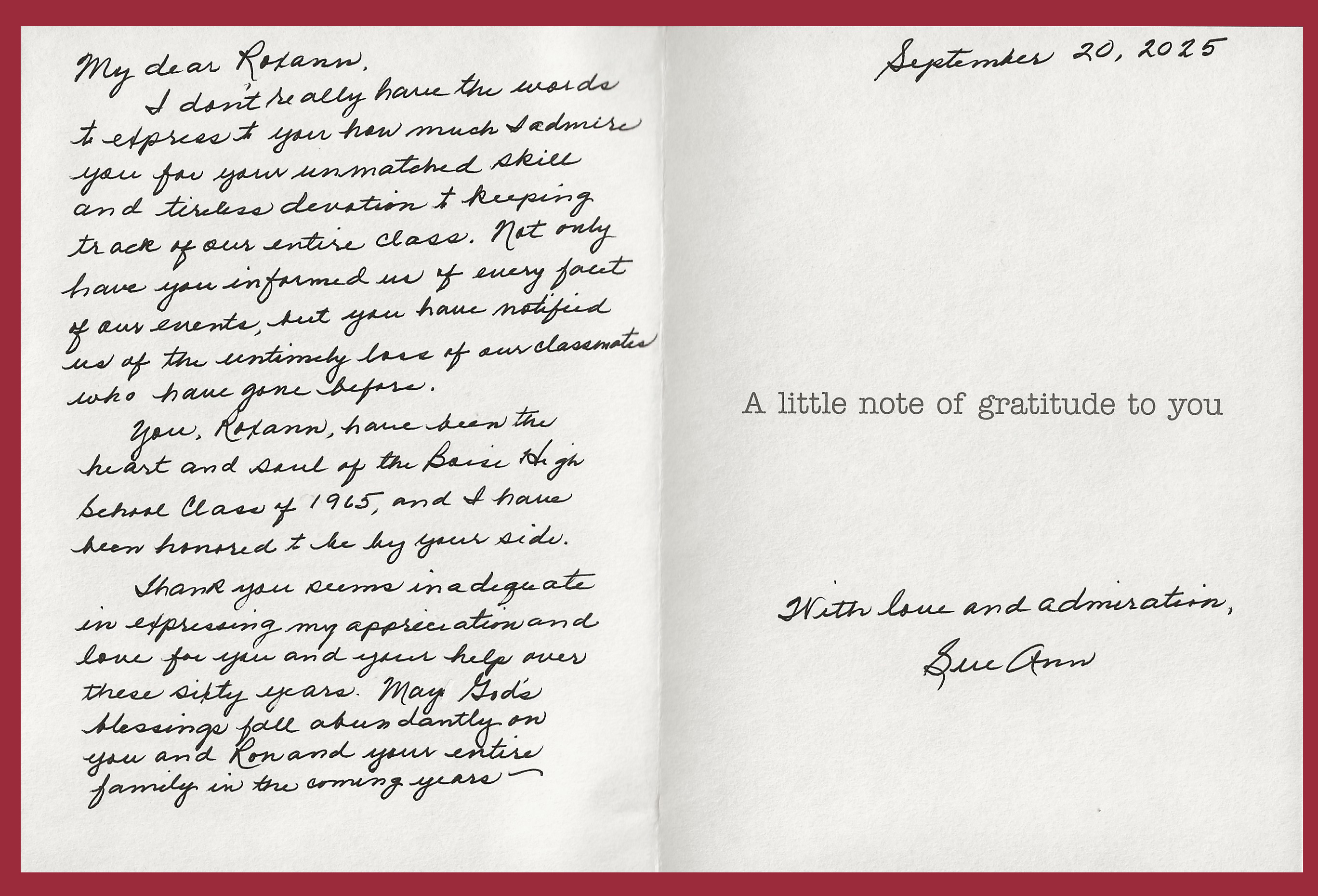 Dear Classmates: